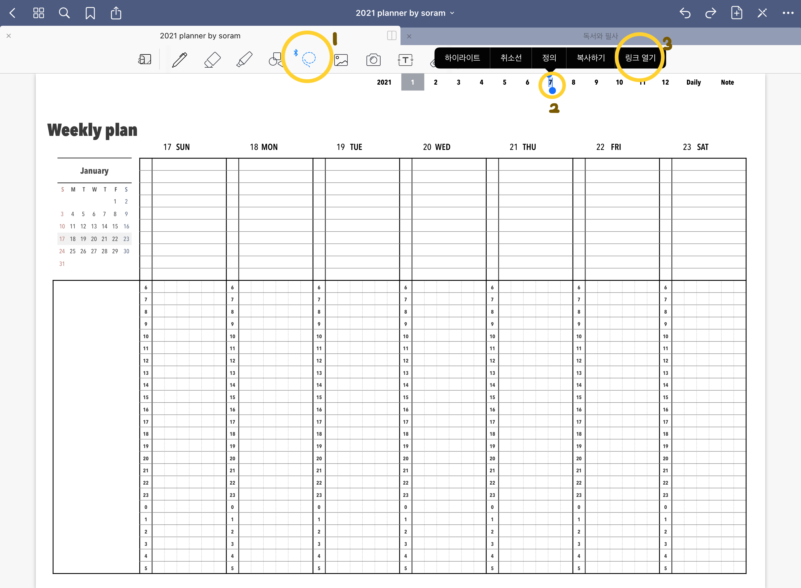 ์๊ฐ๊ด๋ฆฌ๋ฅผ ํ ์ ์๊ฒ ๋ง๋ค์ด์ง ์ํด๋ฆฌ์์, ํ์ฉ๋ ๋์ ๋ ธํธ ์์๊ณผ ํ์ดํผ๋งํฌ์ ๊น๋ํ ๋์์ธ ๋๋ฌธ์ ์ฌํด๋ ์ด๊ฑธ๋ก ์ ํ๋ค. ์์ ํ์ดํผ๋งํฌ ์ค๋ช ์บก์ณํ๋ฉด์ ๋ณด๋ฉด ์๊ฒ ์ง๋ง, ํ์ฌ ์ฌ์ฉ์ค์ธ ๋ค์ด์ด๋ฆฌ์ด๋ค. 2021๋ ์๋ ๋ชฉํ๋ฅผ ๋๋ ทํ๊ฒ ๊ฐ์ง๊ณ ์๊ฐ์ ๊ด๋ฆฌํ ํ์์ฑ์ ๋๊ปด์ ์ ํํ๋ค. ๋ ธํธ์ ๋ถ๋ ์ ๋ ์์ด๋์ด๋ค์ ์ ์ฉํ๋ฉด ๋ค์ํ ํ์ฉ์ด ๊ฐ๋ฅํ๋ค. (์์๋งํฌ๋ ์ฌ๊ธฐ)